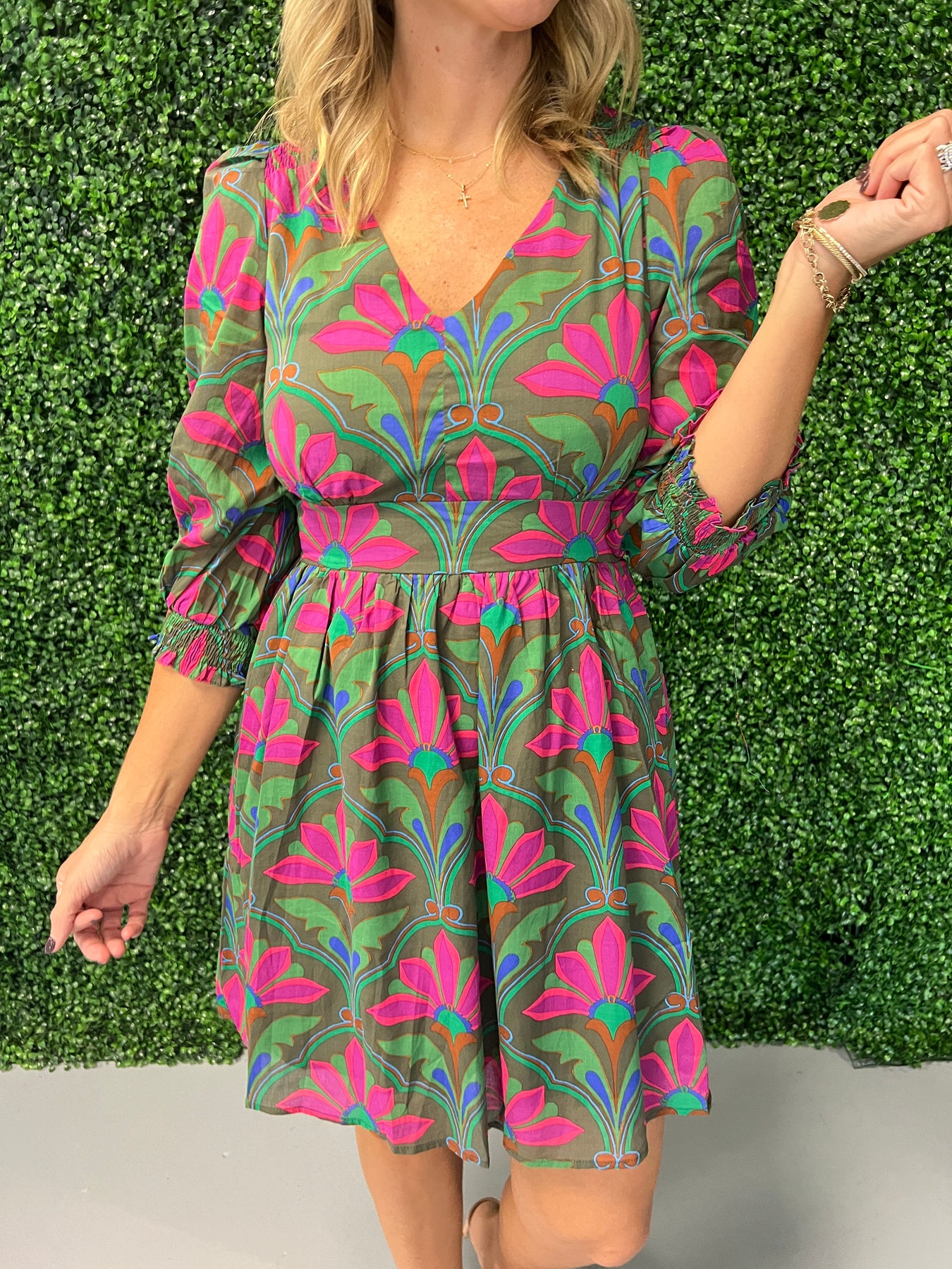 Embrace effortless charm with the Floral Smocked Mini Dress, designed to highlight your silhouette with its flattering smocked bodice. The vibrant floral pattern adds a fresh, feminine touch, perfect for daytime outings or special occasions. Lightweight and comfortable, this mini dress moves gracefully with you, ensuring a flattering fit and easy wear all day long. Elevate your wardrobe with this must-have piece that combines style and comfort seamlessly.