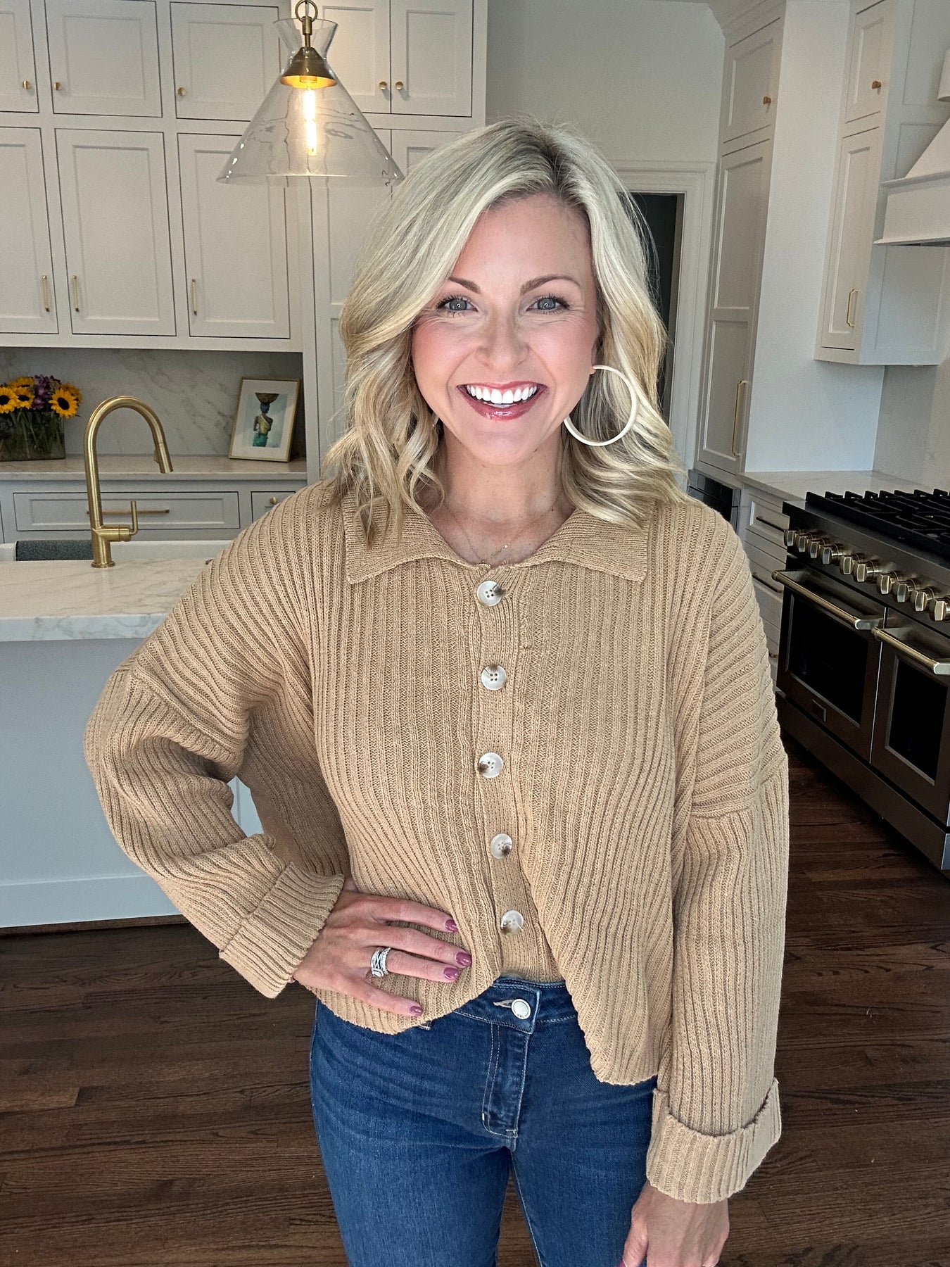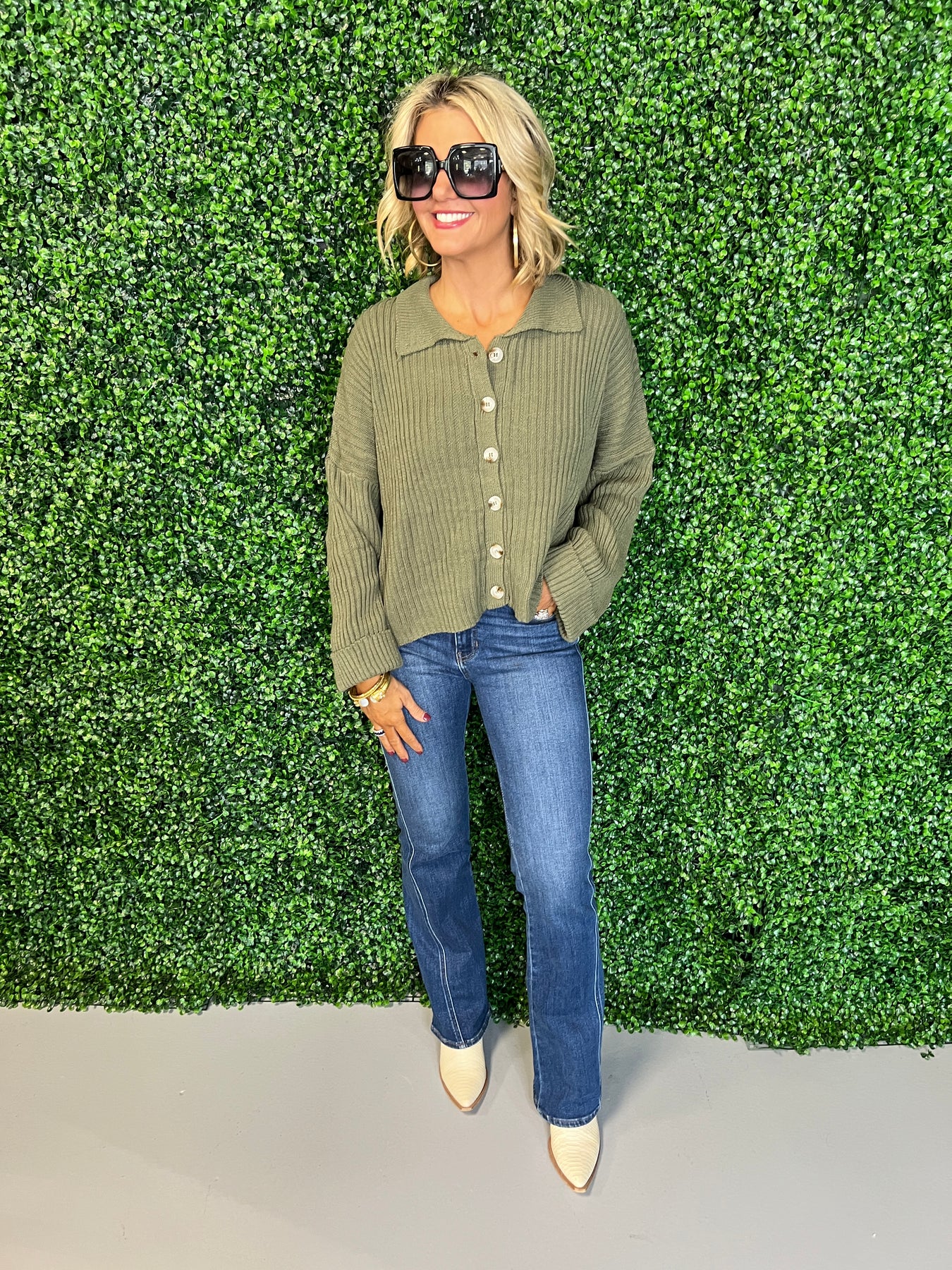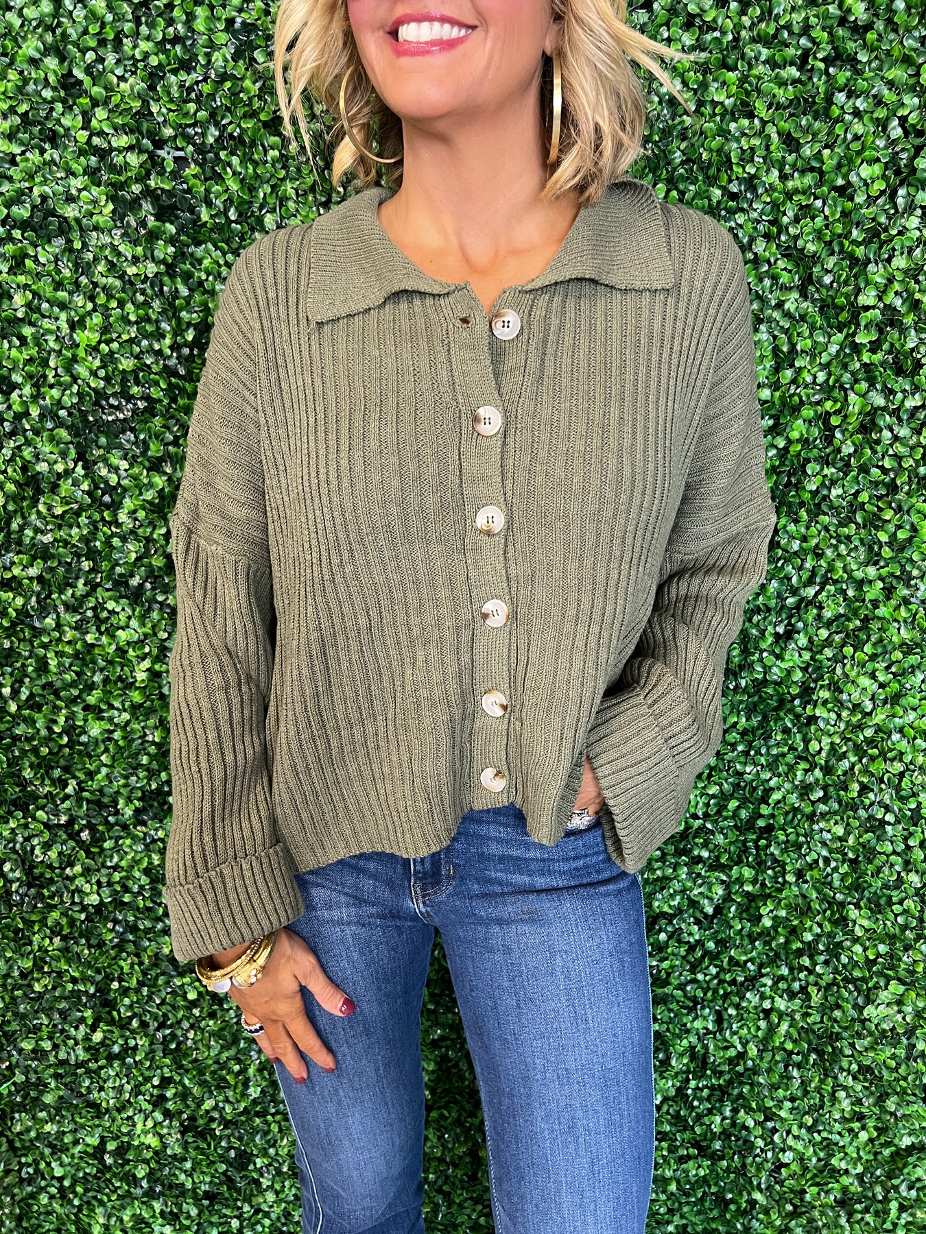 Elevate your wardrobe with the Folded Button Down Ribbed Sweater, designed to combine classic style with cozy comfort. Its textured ribbed fabric offers a flattering fit, while the button-down front adds effortless versatility. Perfect for layering or wearing alone, this sweater brings warmth and sophistication to any outfit, making it a must-have for any season.