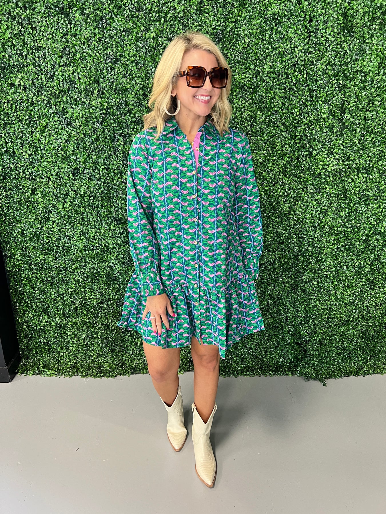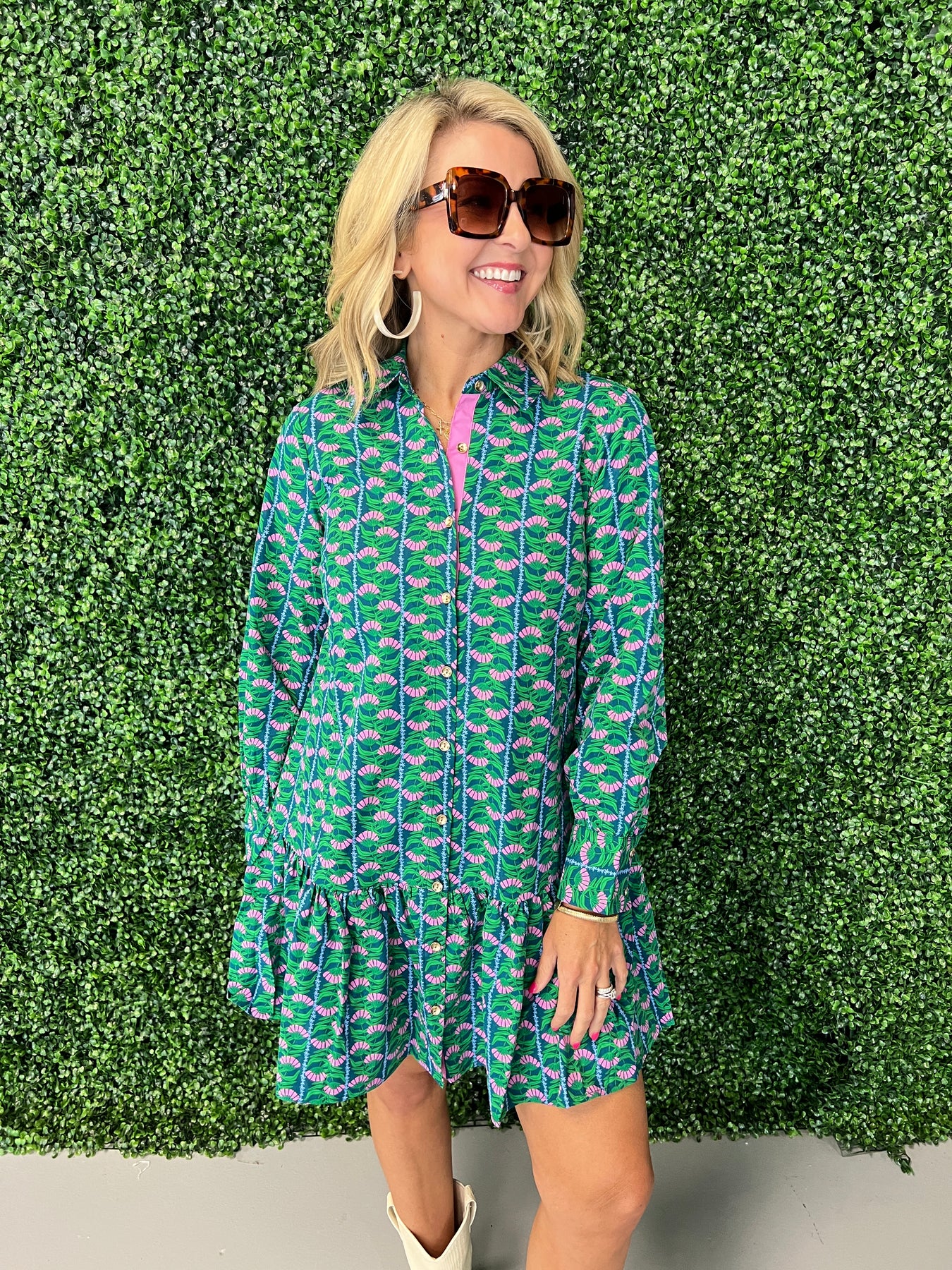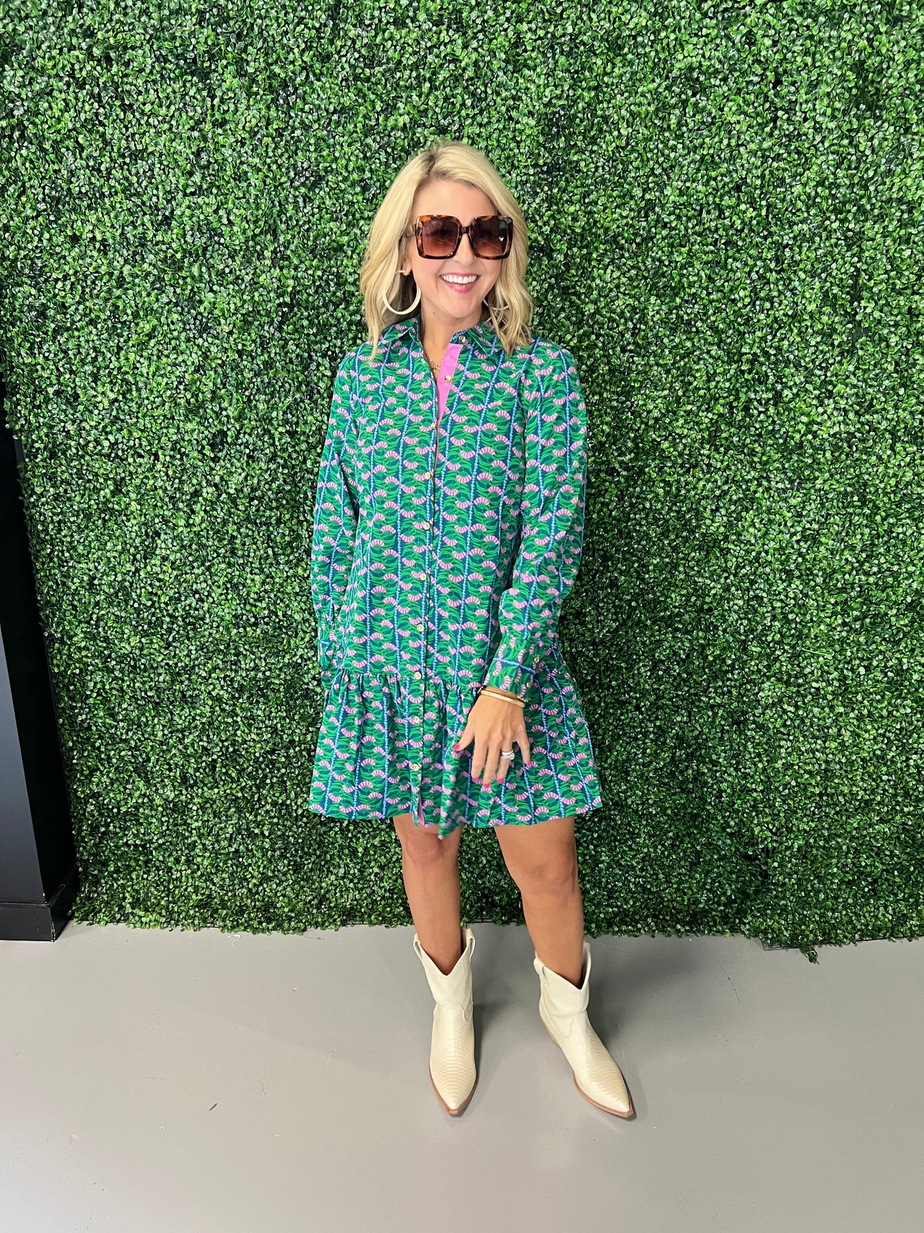 Elevate your wardrobe with the Green Print Fiona Dress, a perfect blend of style and comfort. Its vibrant green print adds a fresh, eye-catching touch, while the flattering silhouette ensures you look and feel confident for any occasion. Ideal for both casual outings and special events, this dress brings effortless elegance to your everyday look.