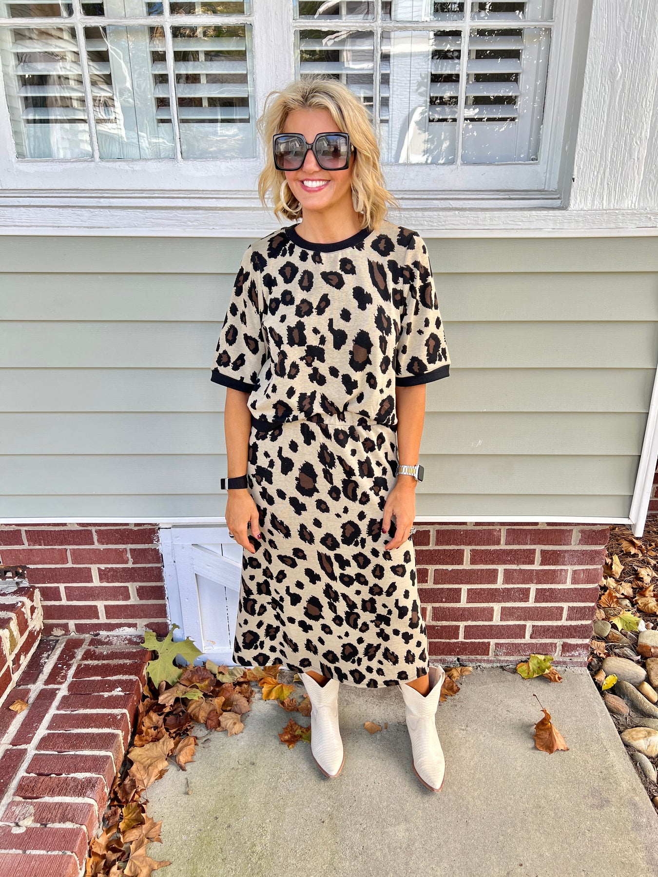 Elevate your wardrobe with the Leopard Printed Two Piece Knit Set, blending bold style and cozy comfort. This matching knit set features a striking leopard print that adds a fierce edge to your look, while the soft fabric ensures all-day ease. Perfect for casual outings or lounging, it offers versatility without sacrificing standout design. Make a confident statement effortlessly with this chic and comfortable ensemble.