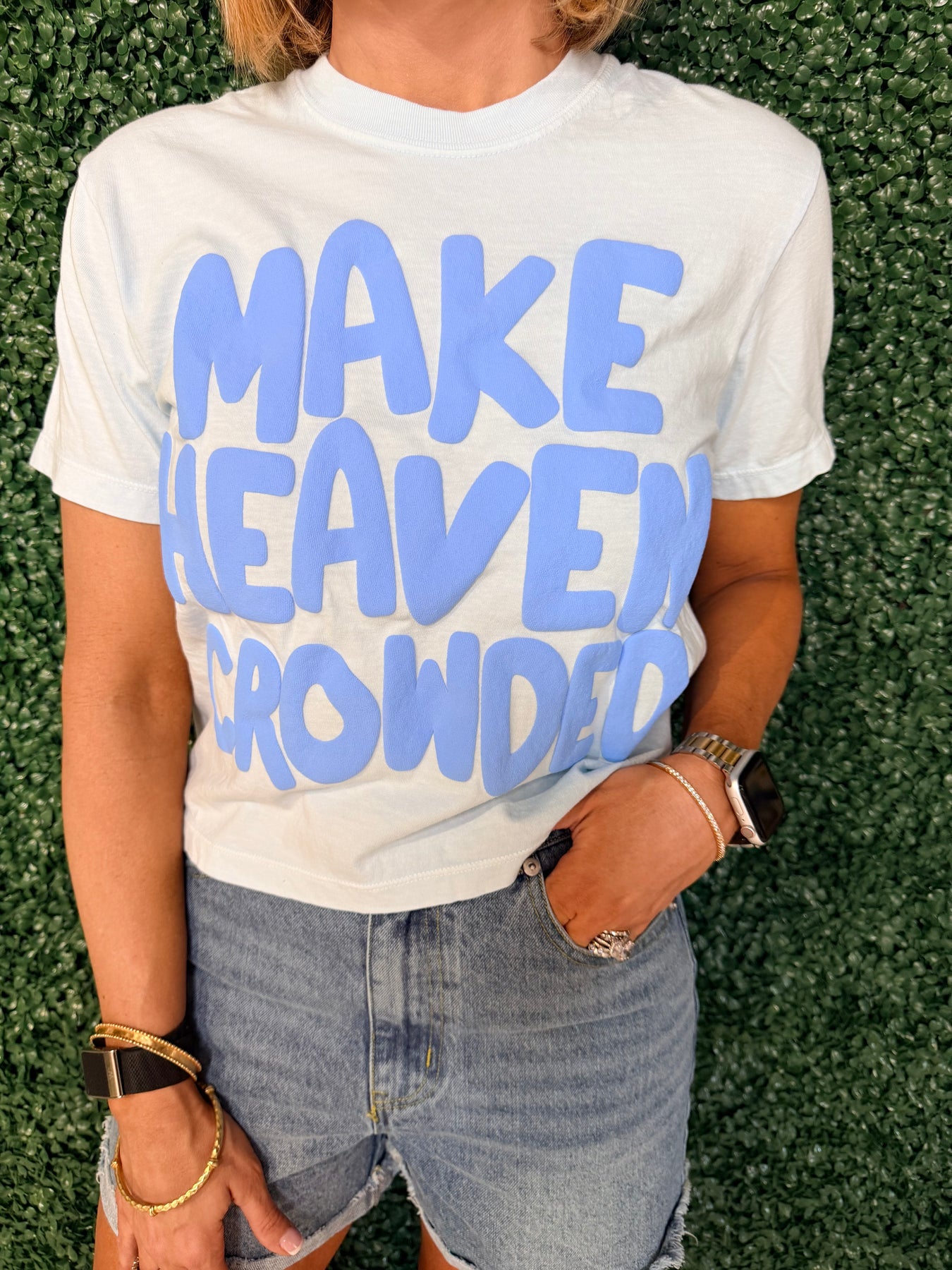 Make a bold statement with this cropped tee that challenges convention and sparks conversation. The "Make Heaven Crowded" message delivers an edgy, thought-provoking vibe perfect for those who aren't afraid to stand out. Crafted for comfort and style, this cropped silhouette flatters while keeping your look fresh and contemporary. Whether you're expressing your beliefs or simply embracing a rebellious aesthetic, this tee becomes an instant wardrobe essential that turns heads and invites dialogue.