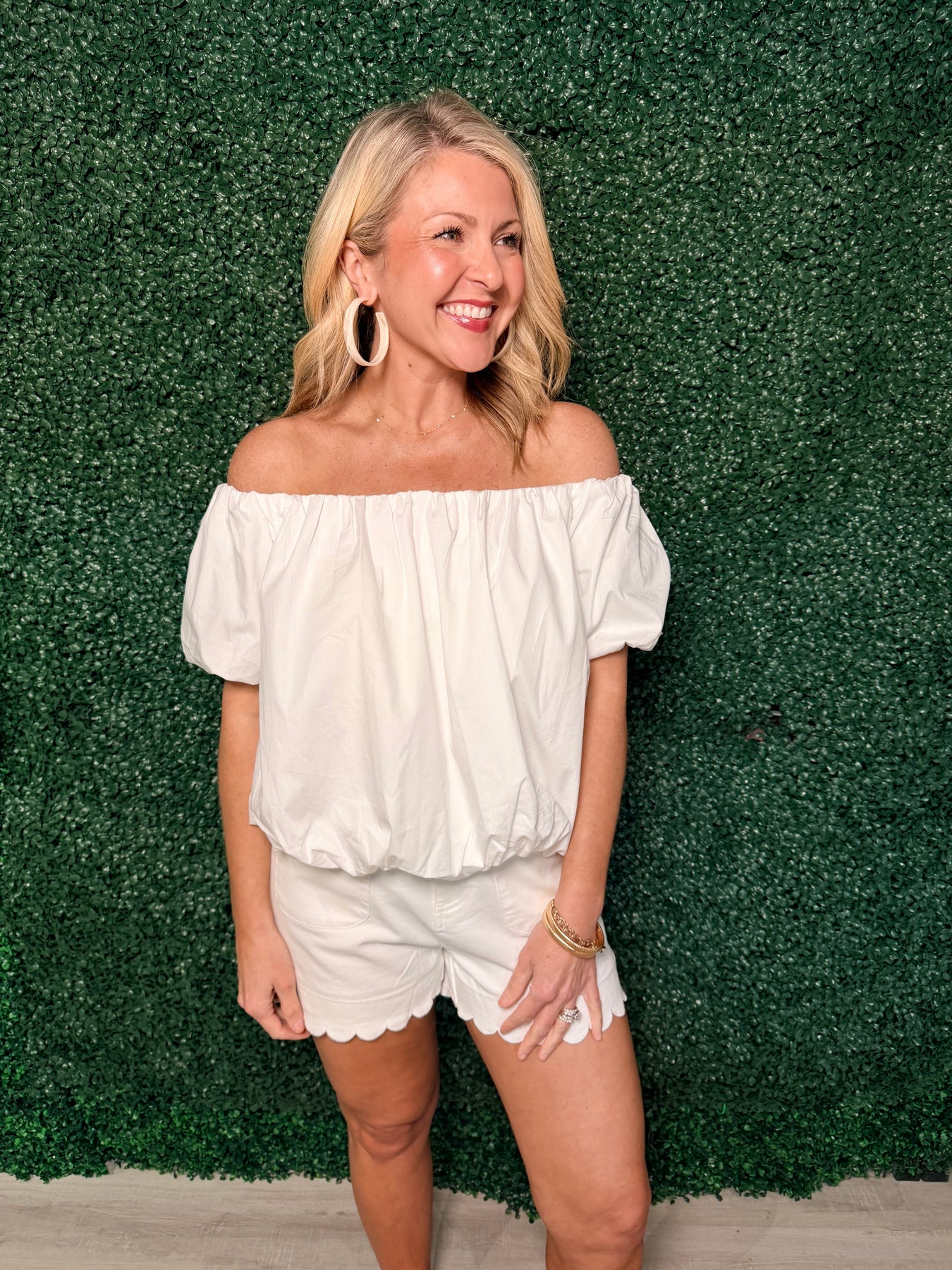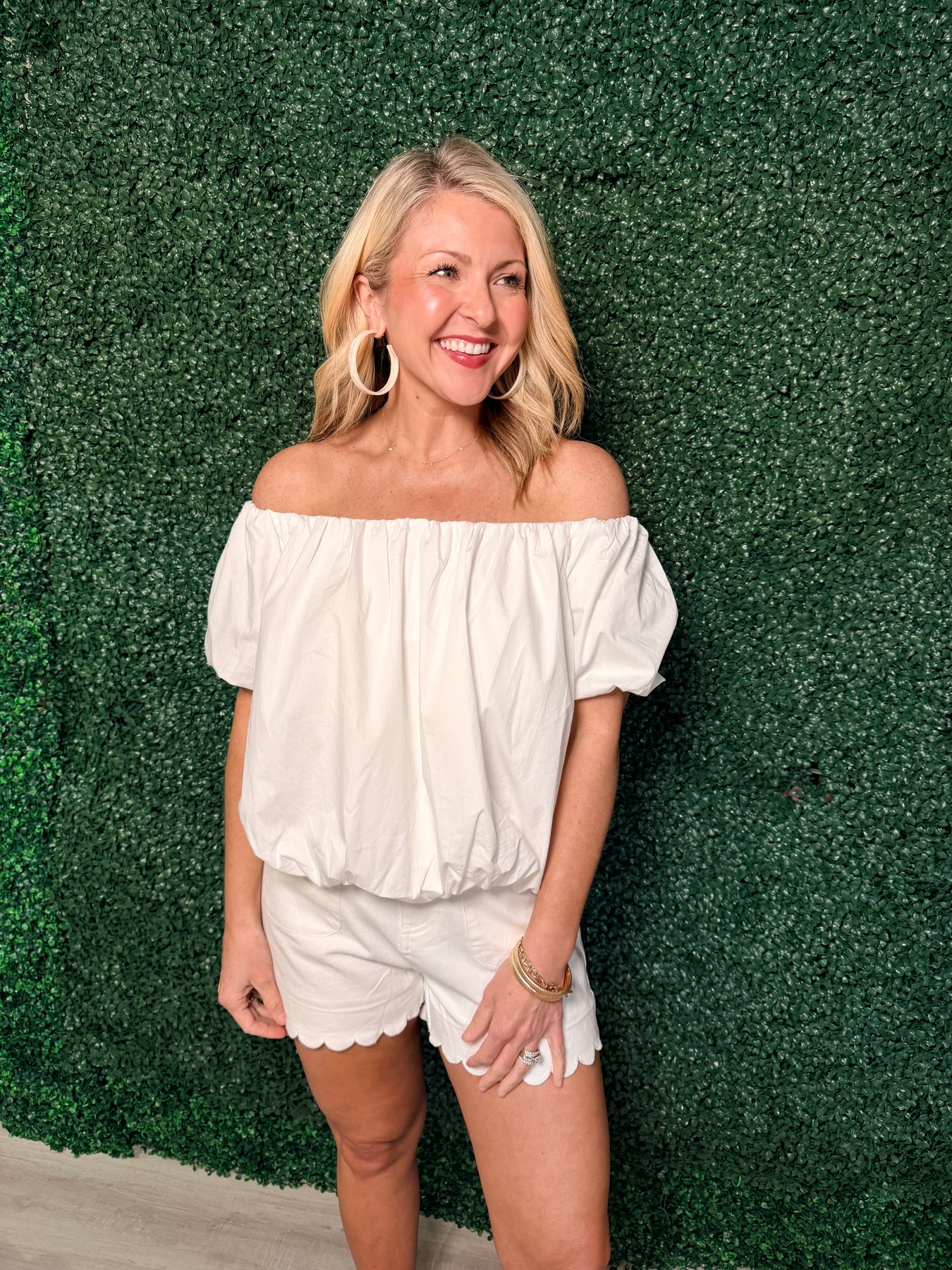 White Off The Shoulder Puff Sleeve Top