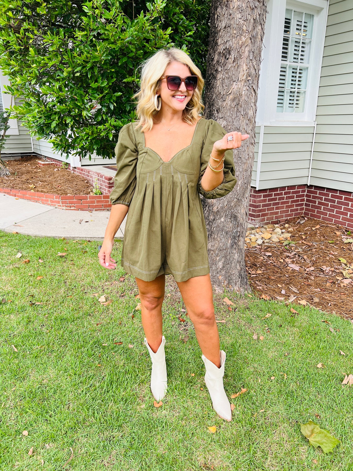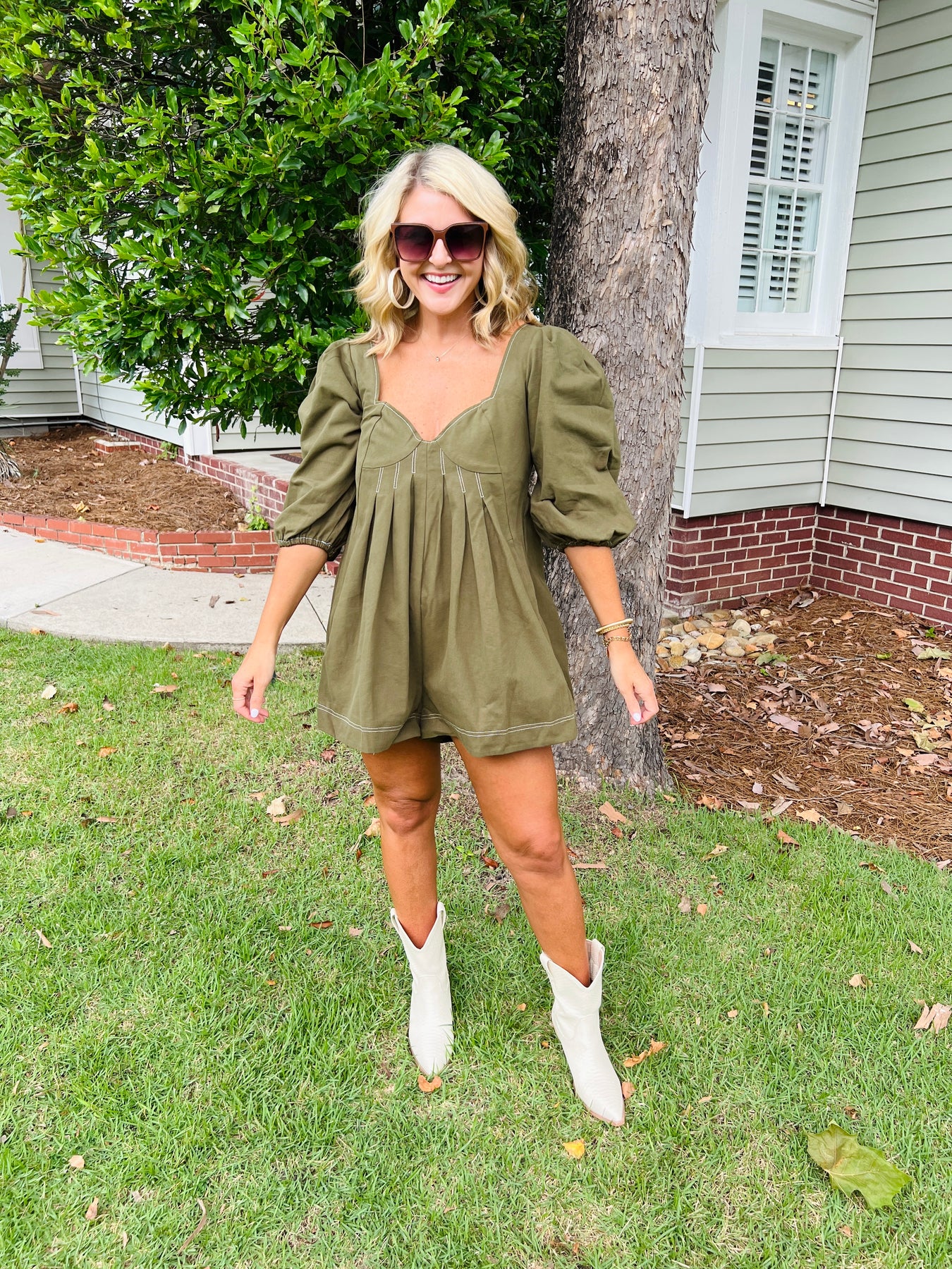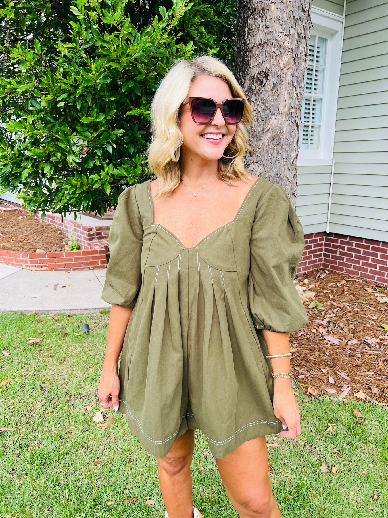 Elevate your wardrobe with the Olive Green Puff Sleeve Romper, designed to blend comfort and style effortlessly. Its flattering puff sleeves add a touch of elegance, while the rich olive green hue complements any skin tone. Perfect for casual outings or dressier occasions, this romper offers a chic, all-in-one look that keeps you feeling confident and comfortable all day long. Make a statement with this versatile piece that’s as practical as it is fashionable.