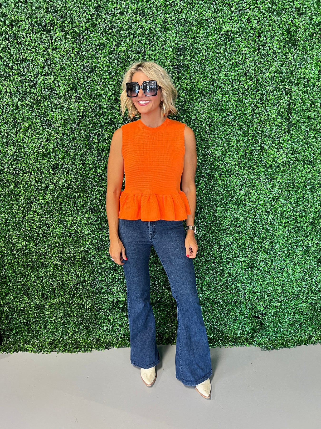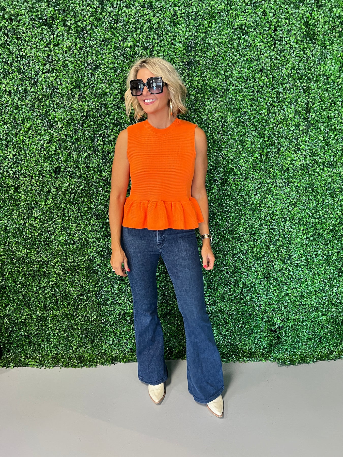 Brighten your wardrobe with this Orange Sleeveless Knit Top, designed for comfort and style. Its lightweight knit fabric offers breathability, making it perfect for warm days or layering. The vibrant orange hue adds a pop of color to any outfit, while the sleeveless cut ensures freedom of movement. Ideal for casual outings or dressing up with accessories, this top combines versatility with a flattering fit to keep you looking effortlessly chic.