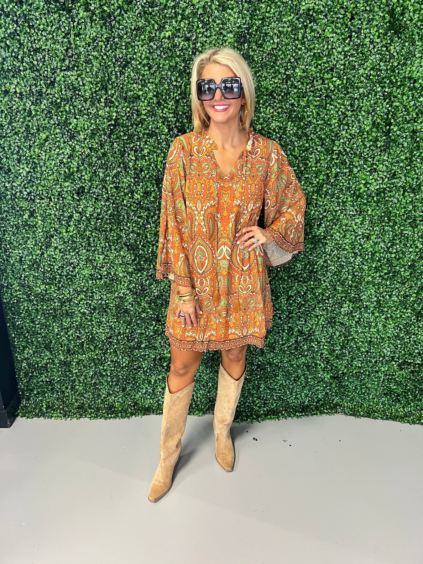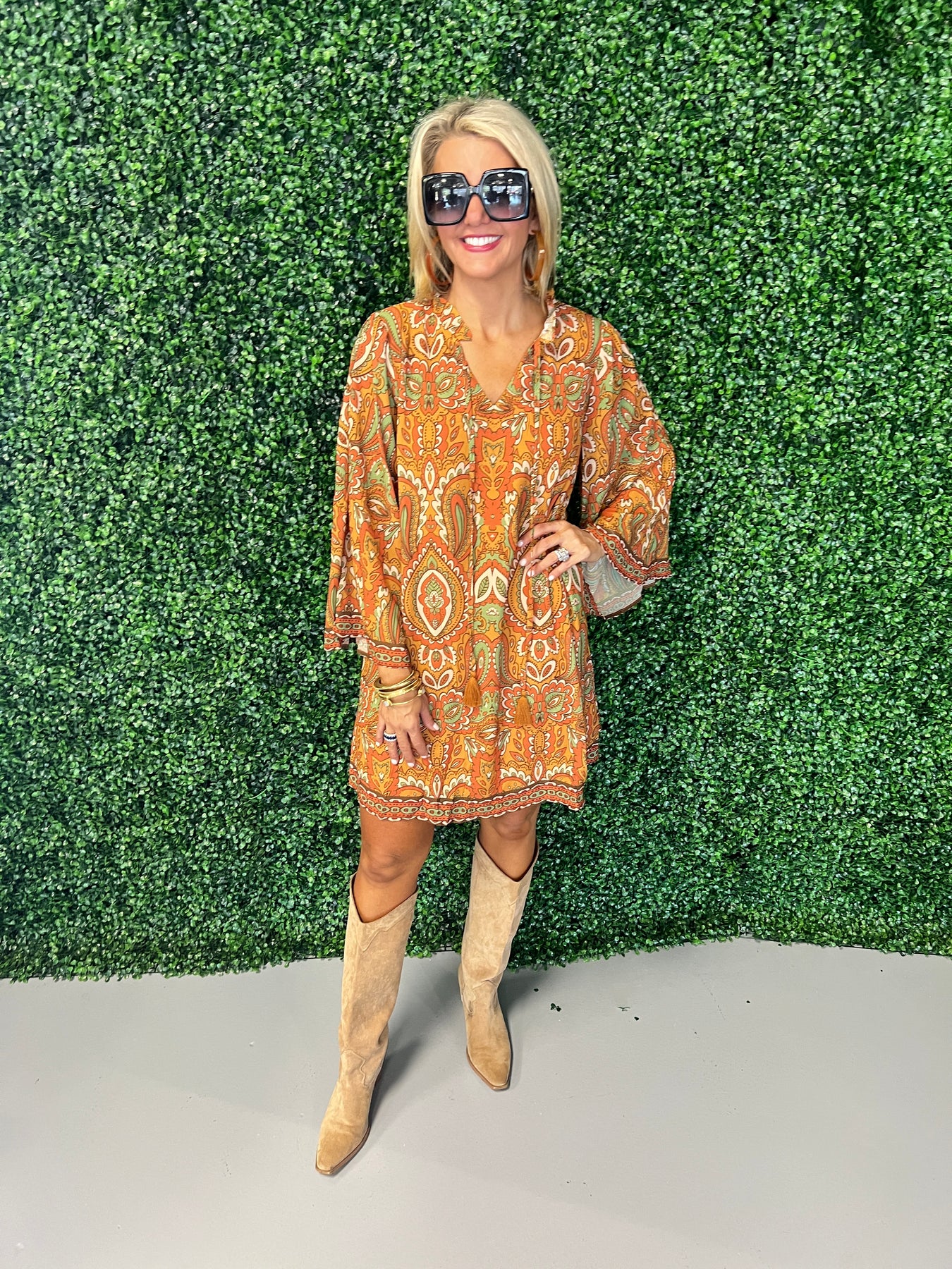 Elevate your wardrobe with the Open Back Paisley Printed Midi Dress, designed to combine timeless elegance with effortless style. Its flowing silhouette and intricate paisley pattern create a graceful, eye-catching look perfect for both daytime outings and evening events. Crafted for comfort and flattering fit, this dress brings a touch of sophistication to any occasion. Step into confidence and charm with this versatile piece that’s as comfortable as it is stunning.