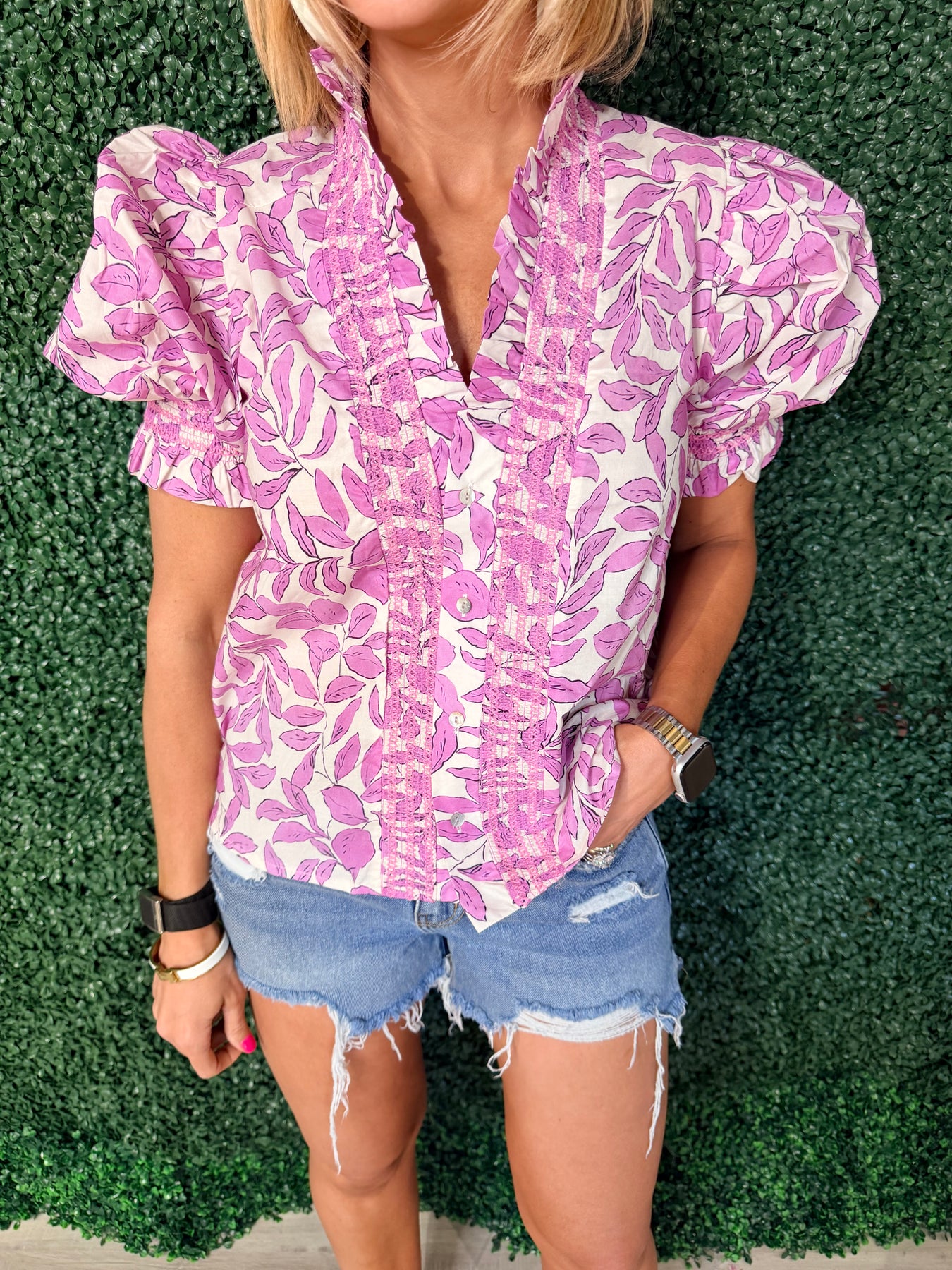 Elevate your wardrobe with this charming green blouse featuring a delicate ruffle V-neckline and romantic smocked puff sleeves. The floral design adds timeless elegance, while the structured smocking at the shoulders creates a flattering silhouette. Perfect for dressing up casual outfits or layering under jackets, this versatile piece transitions seamlessly from day to evening. The soft fabric and thoughtful details make it an essential addition to any style-conscious closet.