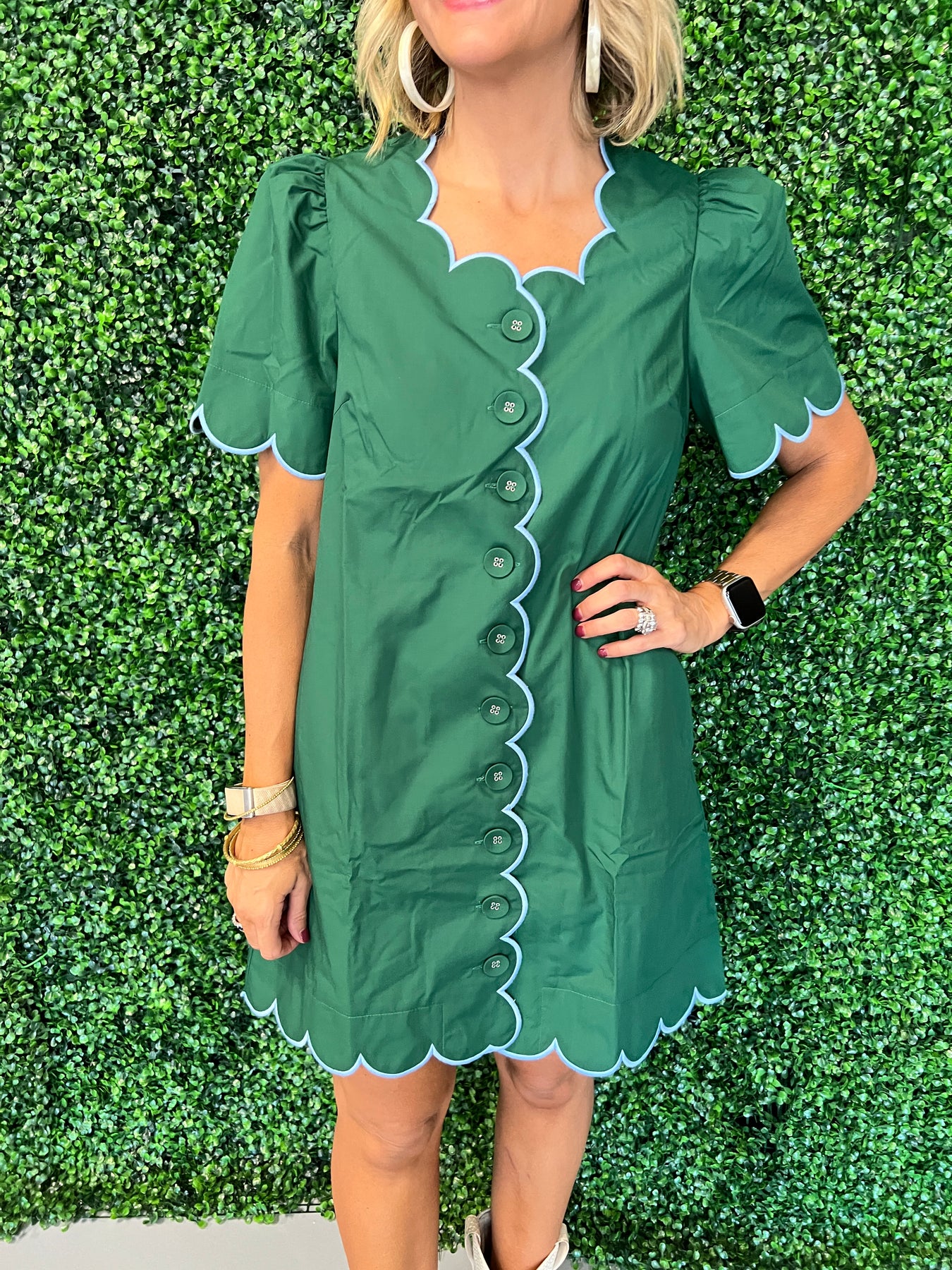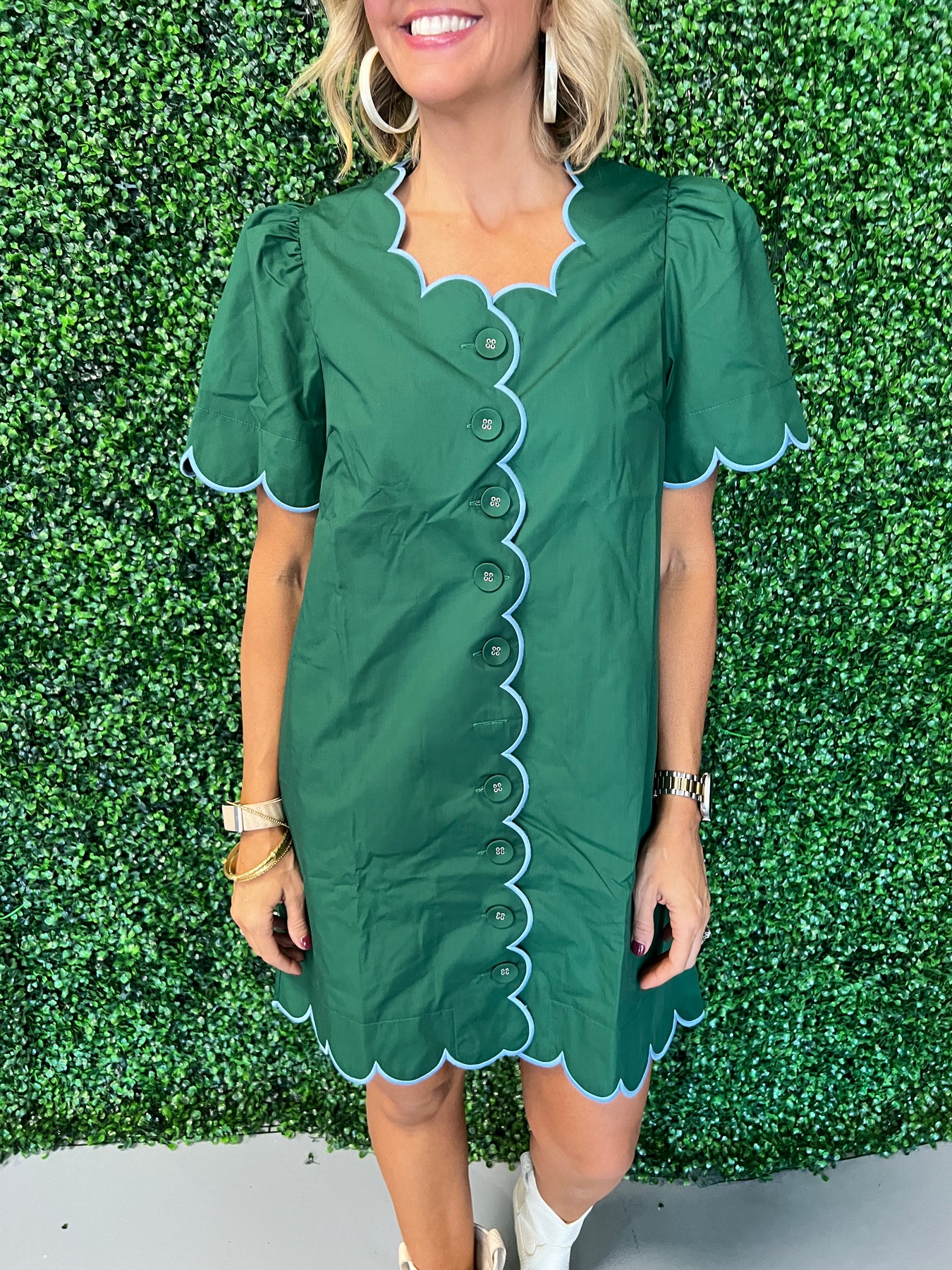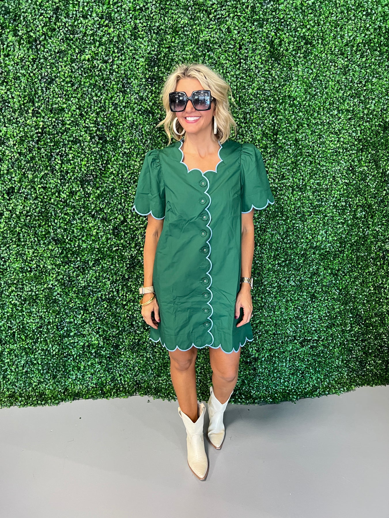 Elevate your style with the Scallop Embroidered Edge Mini Dress, featuring delicate scalloped trim that adds a touch of elegance to its flattering silhouette. Perfect for both casual outings and special occasions, this dress pairs effortless charm with a refined finish to keep you confidently dressed all day or night.