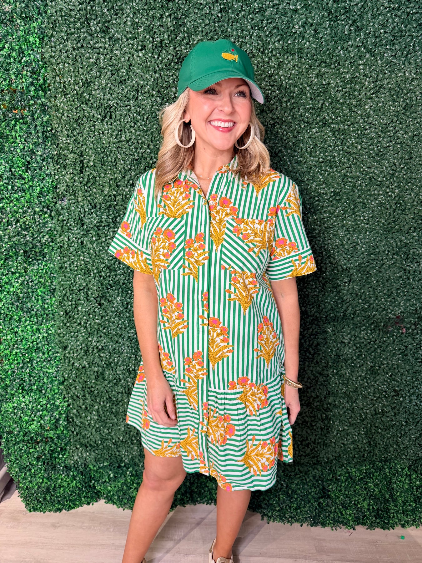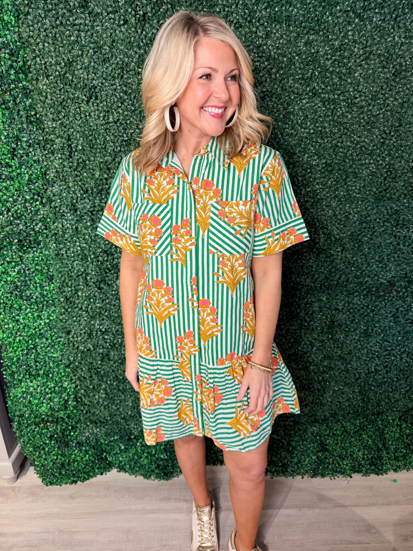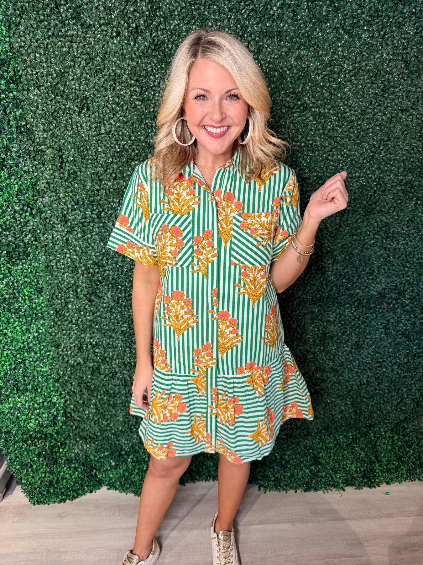Effortlessly blend classic style with modern flair in this short sleeve striped floral pattern dress. The dynamic combination of stripes and florals creates visual interest that works beautifully for casual outings or dressed-up occasions. Lightweight and comfortable, this versatile piece transitions seamlessly from day to night. Perfect for spring and summer wardrobes, it pairs easily with your favorite accessories and footwear. A timeless addition that delivers both elegance and everyday wearability.