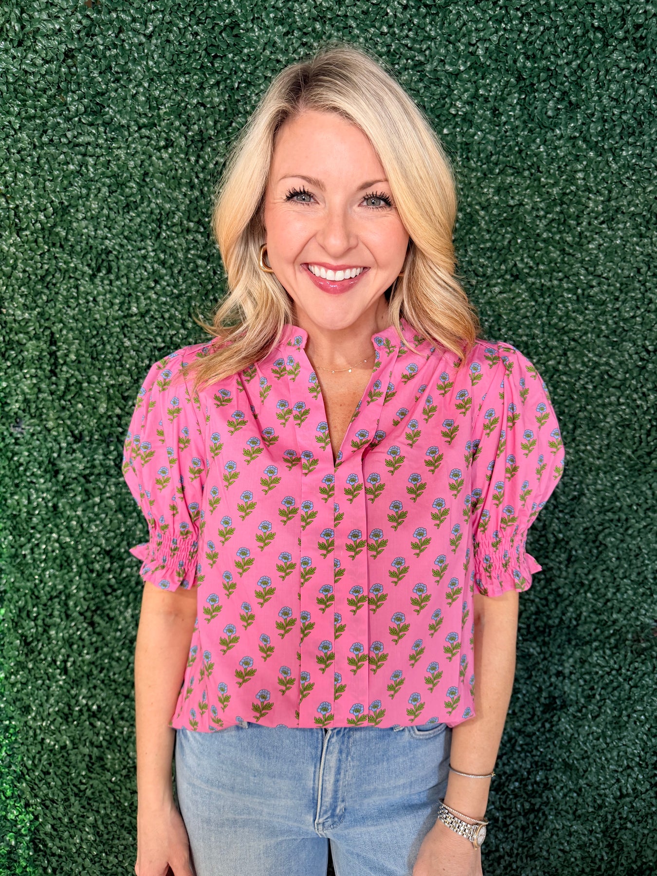 Elevate your wardrobe with this charming Smocked Cuff Floral Print Top, where delicate florals meet refined details. The expertly smocked cuffs add a touch of sophistication and create a flattering silhouette that transitions seamlessly from casual days to evening outings. Crafted for comfort and style, this versatile piece pairs beautifully with everything from denim to tailored trousers. Perfect for anyone seeking a feminine, polished look that stands out from the ordinary.