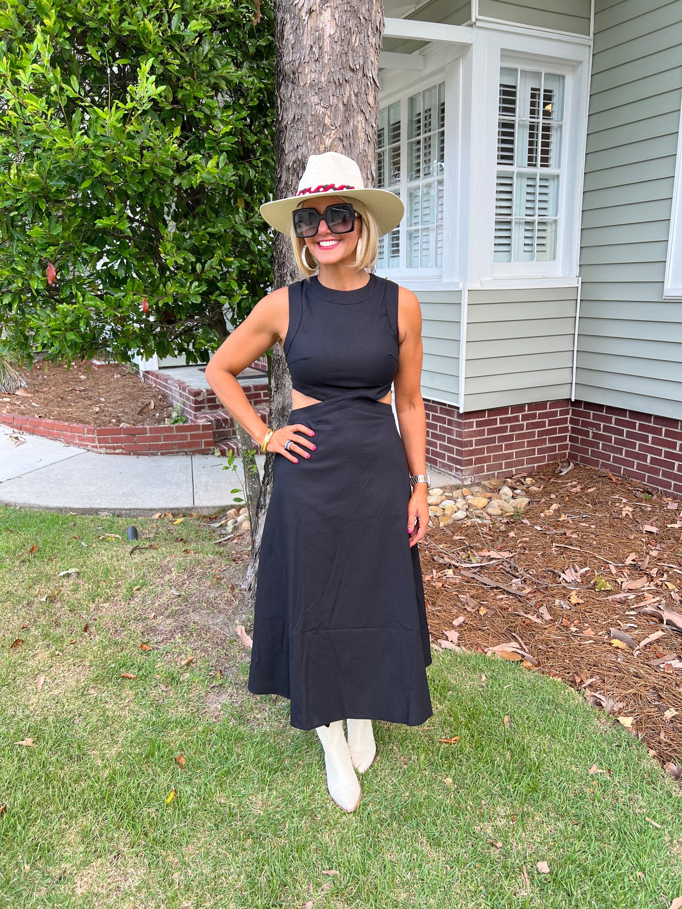 Elevate your style with this Solid Black Cut Out Dress, designed to turn heads with its sleek silhouette and daring cut-out details. Perfect for evening events or a night out, it combines bold fashion with effortless elegance. Crafted to flatter your figure, this dress ensures you stand out with confidence and sophistication.