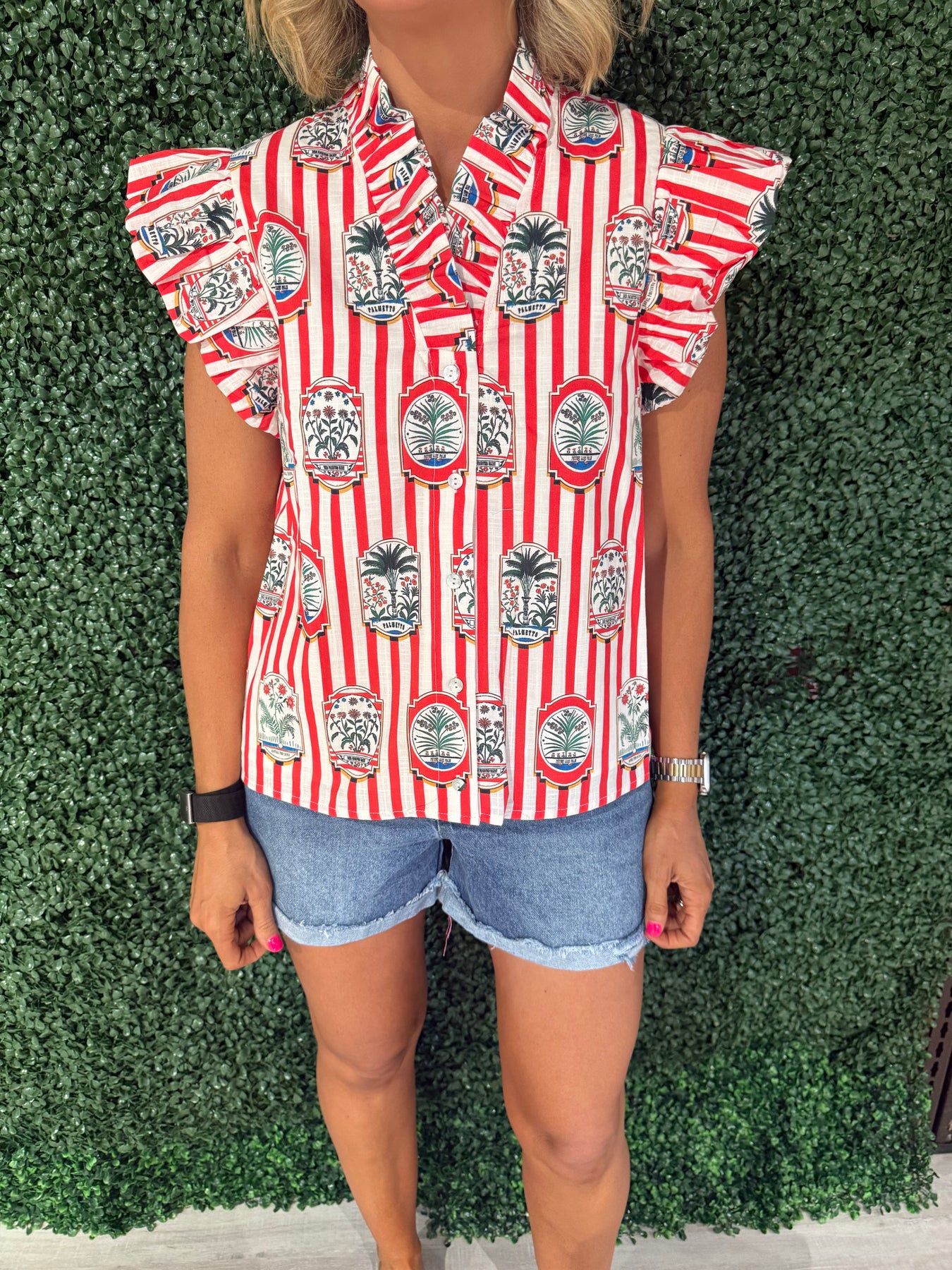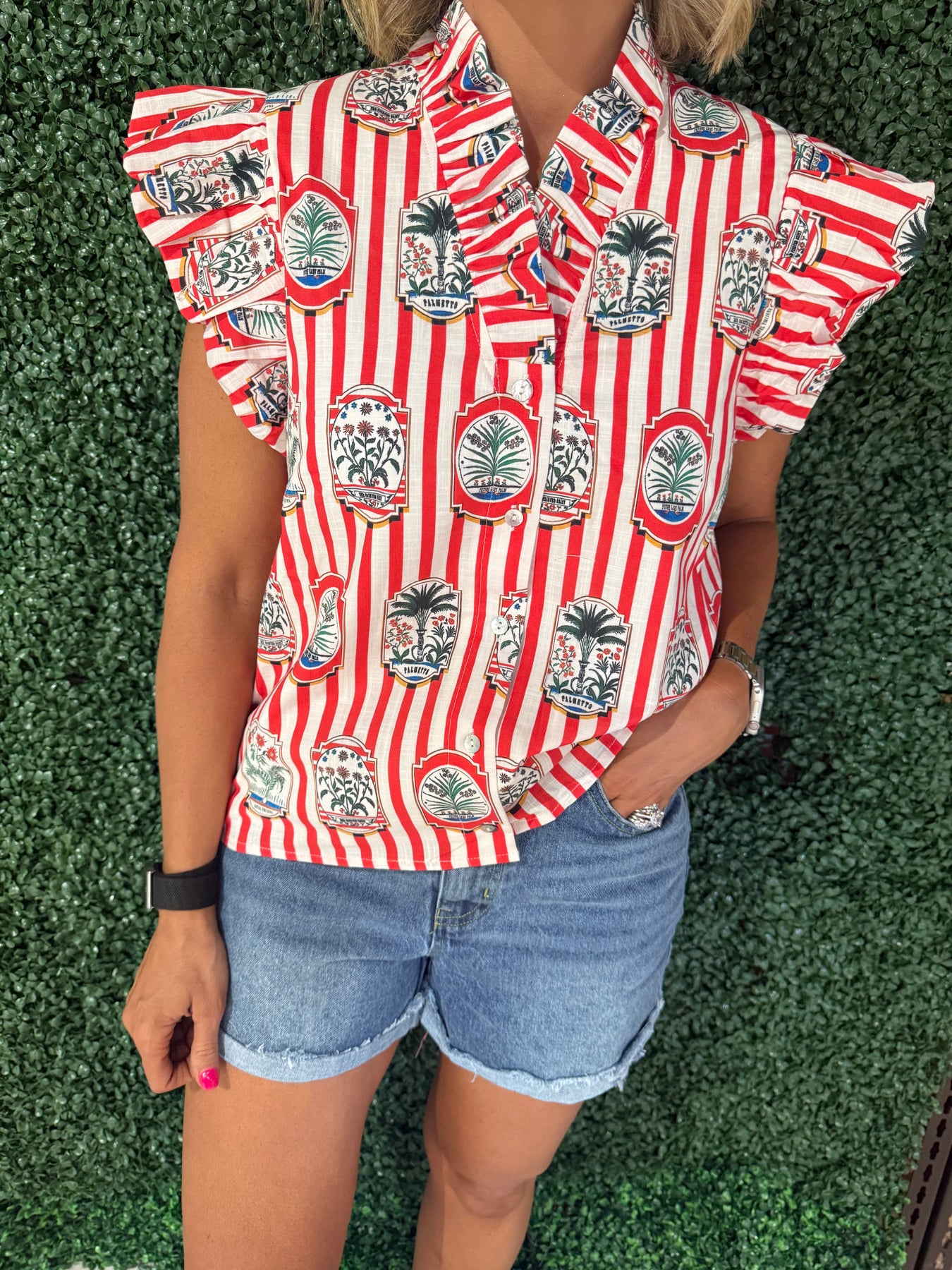 Elevate your wardrobe with this captivating striped botanical print top that effortlessly blends nature-inspired style with contemporary flair. The delicate ruffled flutter sleeves add a touch of romantic elegance, creating movement and dimension with every wear. Perfect for transitioning from casual days to evening outings, this versatile piece pairs beautifully with jeans, skirts, or tailored trousers. The thoughtful design flatters various body types while the botanical print brings visual interest and personality to your everyday looks. Whether you're heading to brunch, the office, or a weekend adventure, this top delivers both comfort and undeniable charm that makes getting dressed a joy.