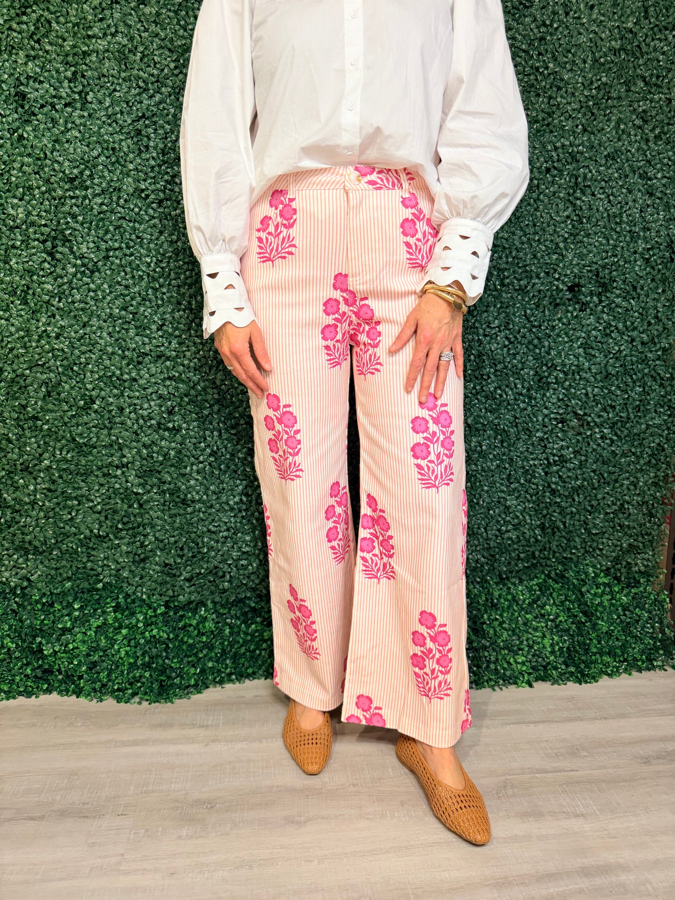 Elevate your wardrobe with these stunning Striped Floral Wide Leg Pants—the perfect blend of bold pattern and flattering silhouette. The eye-catching striped floral design brings personality to any outfit, while the wide-leg cut offers comfort and movement without sacrificing style. Whether you're dressing up for a special occasion or keeping it casual, these pants transition seamlessly from day to night. The relaxed fit skims your frame beautifully, making them a versatile essential that works with everything from fitted tops to oversized blouses. Step into effortless elegance and make a statement wherever you go.