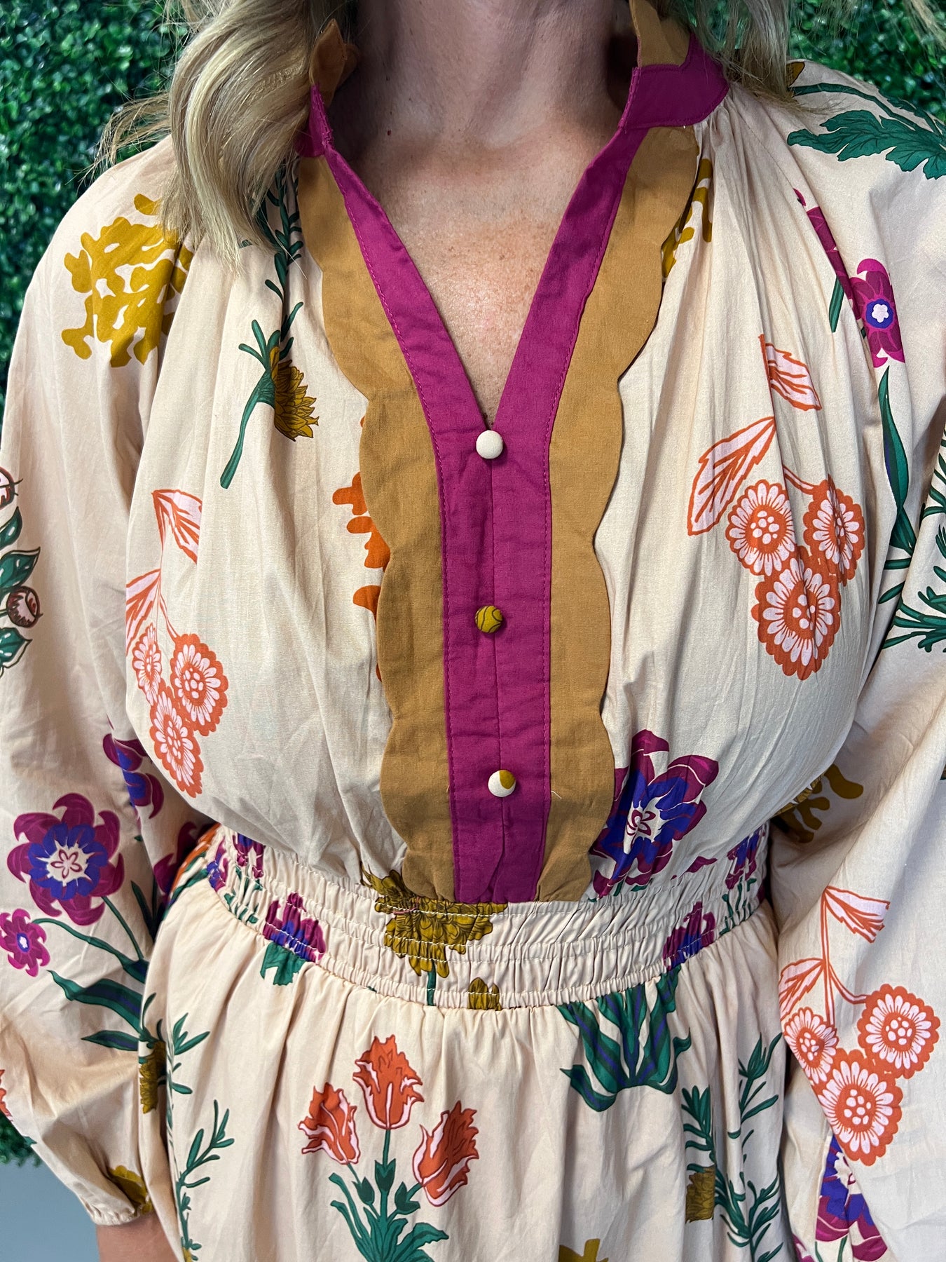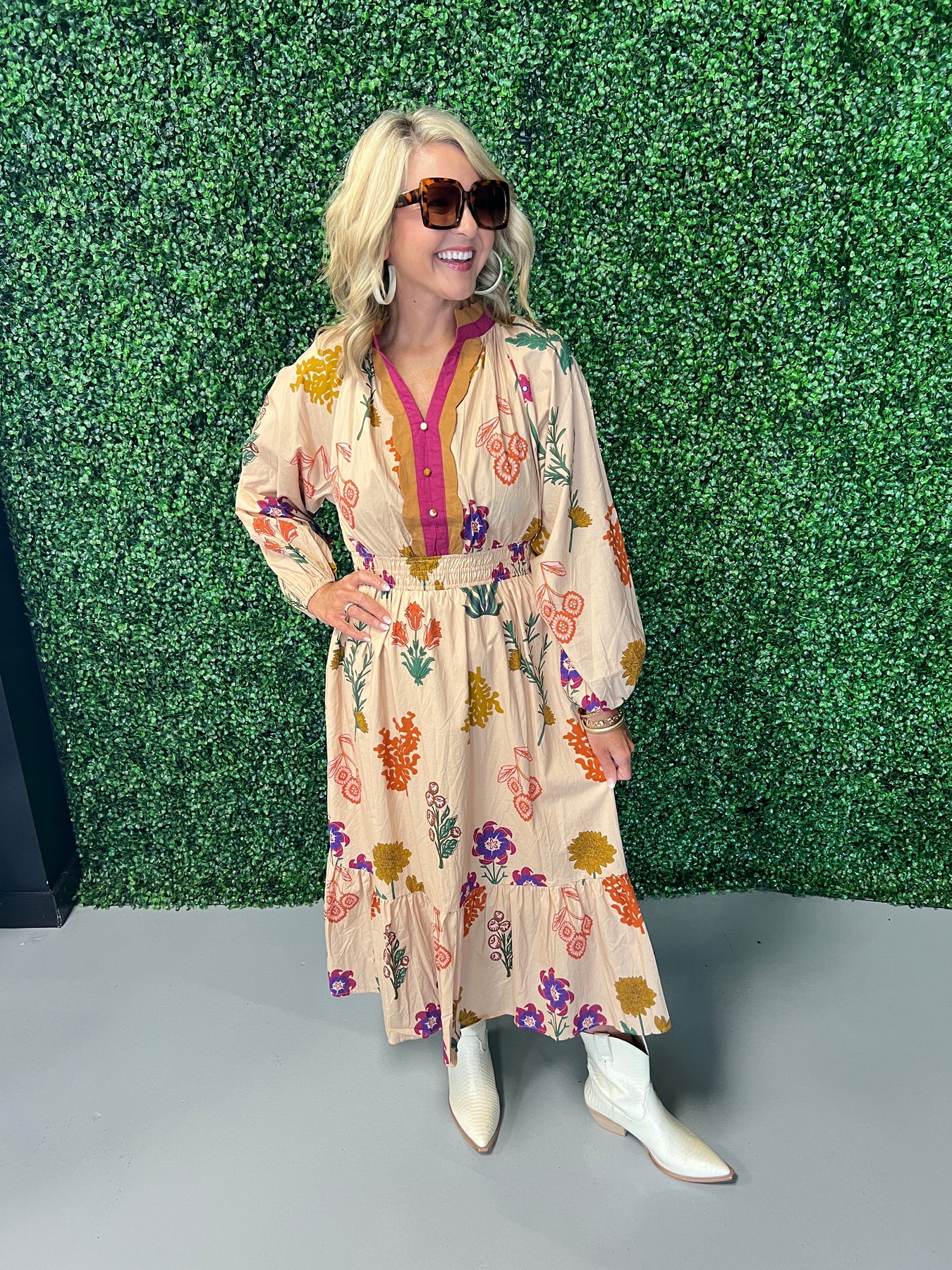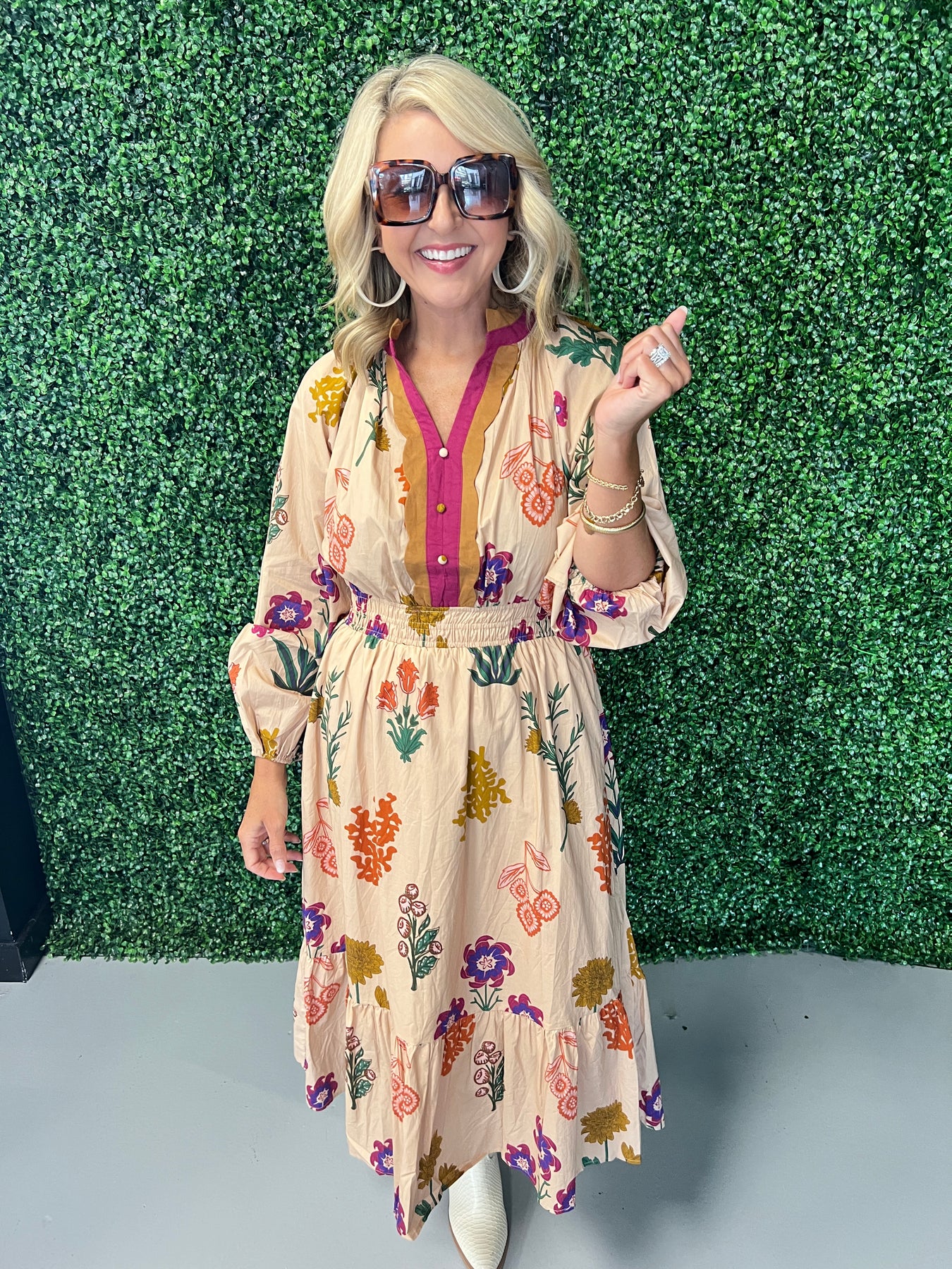 Elevate your wardrobe with the Tan Mix Floral Midi Dress, featuring a harmonious blend of warm tan tones and delicate floral patterns. This dress offers a flattering midi length that enhances your silhouette while providing comfortable wear for any occasion. Perfect for both casual outings and special events, its stylish design ensures you look effortlessly chic wherever you go. Embrace timeless elegance with this versatile piece.
