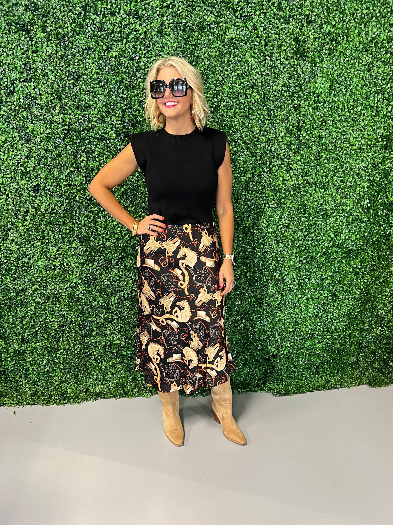 Elevate your wardrobe with the Western Print Satin Midi Slip Skirt, combining silky smooth satin with a bold, distinctive western-inspired pattern. Its flattering midi length and sleek slip design offer effortless elegance and comfort, perfect for both casual outings and special occasions. Embrace a stylish blend of classic and modern that moves with you, making every step a statement.